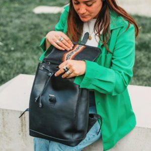 The LEO black leather backpack, with its minimalist and urban design, will be the ideal partner for all your activities in town!