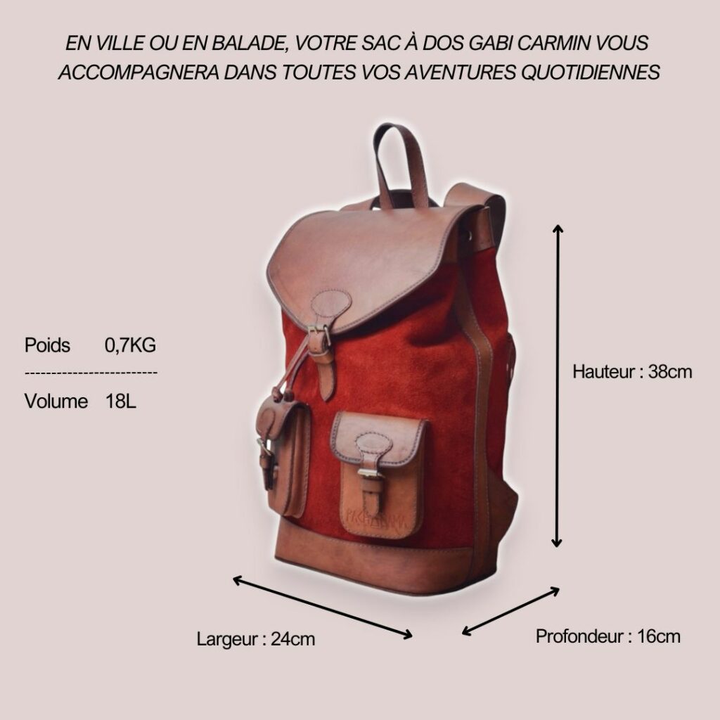 Pour la taille du modèle GABI, nous avons calibré notre sac à dos notamment par rapport aux dimensions des ordinateurs que l’on peut y mettre (13 et 14 pouces) 🙂 Pour une plus grande contenance, notre gamme de sacs à dos est également composée du modèle JOE avec des proportions plus importantes.