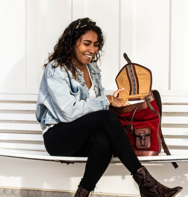Un choix responsable, un style inimitable ! Chaque sac à dos GABI Carmin est confectionné à la main en Bolivie, dans un atelier familial labellisé Commerce Équitable. Chaque pièce est unique, façonnée avec passion et savoir-faire. Il faut une journée entière pour donner vie à un seul sac !
