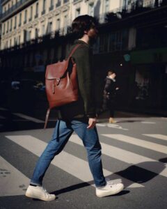 Cuir pleine fleur, toile cirée, coton bio ou matières recyclées : les matériaux doivent être résistants mais aussi agréables au toucher. Le cuir ajoute une touche premium et durable. Un sac à dos minimaliste en cuir est un bon compromis entre esthétique et robustesse.